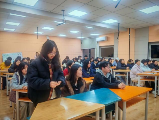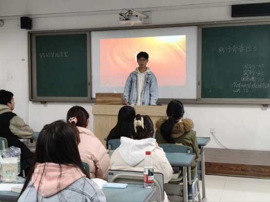 在嘹亮的团歌声中,本次主题团日活动正式拉开帷幕。团员们有序签到后全体肃立,以齐声高唱团歌开启这场青春集会。活动伊始,团支书清晰阐述了本次活动的背景、目的与主要流程,并通过一部主题视频,以生动鲜活的案例故事,将贺信精神的深刻内涵具象呈现,迅速引发了现场同学的深入思考。视频播放结束后,大家围绕“贺信的核心要义”与“新时代青年的责任担当”等议题展开分享讨论,在思想交流中深化认识。随后,团支书结合国家发展蓝图与物流行业未来趋势,对贺信精神进行了深层解读,点明了青年的时代使命。紧接着,各班学生代表依次上台,他们结合自身学习经历与职业规划,真诚讲述对“青春担当”的理解。有的立志用物流专业知识服务行业发展,有的许下扎根志愿服务、践行为民服务的承诺。一句句真挚的青春誓言,激起了现场阵阵共鸣与掌声,将活动氛围推向高潮。