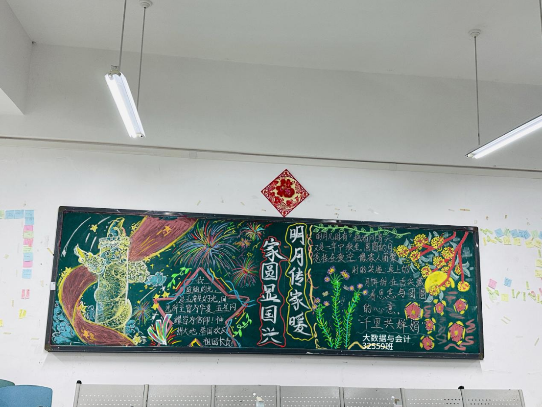 为弘扬中华优秀传统文化,营造浓厚的节日氛围,增强师生的家国情怀,2025年10月22日,物流工程学院开展了以“明月传家暖,家圆显国兴”为主题的黑板报评比活动。