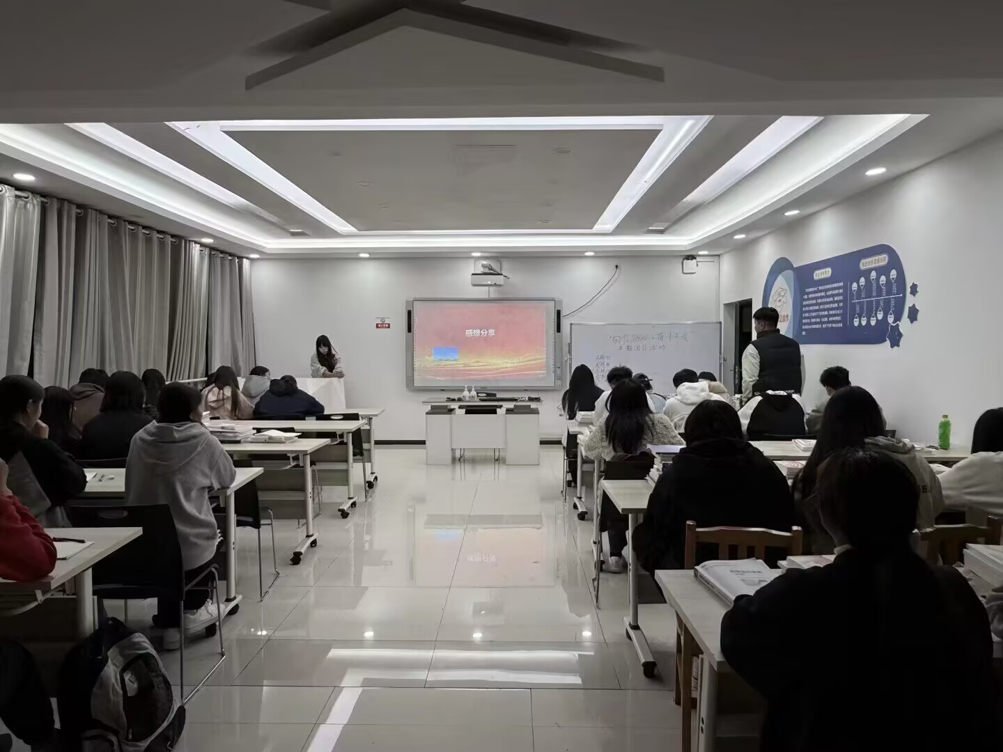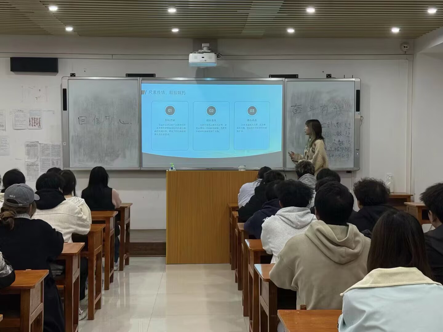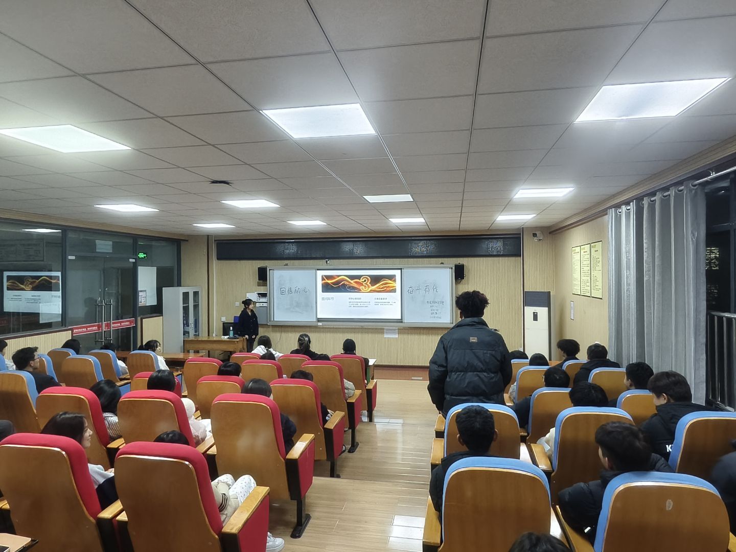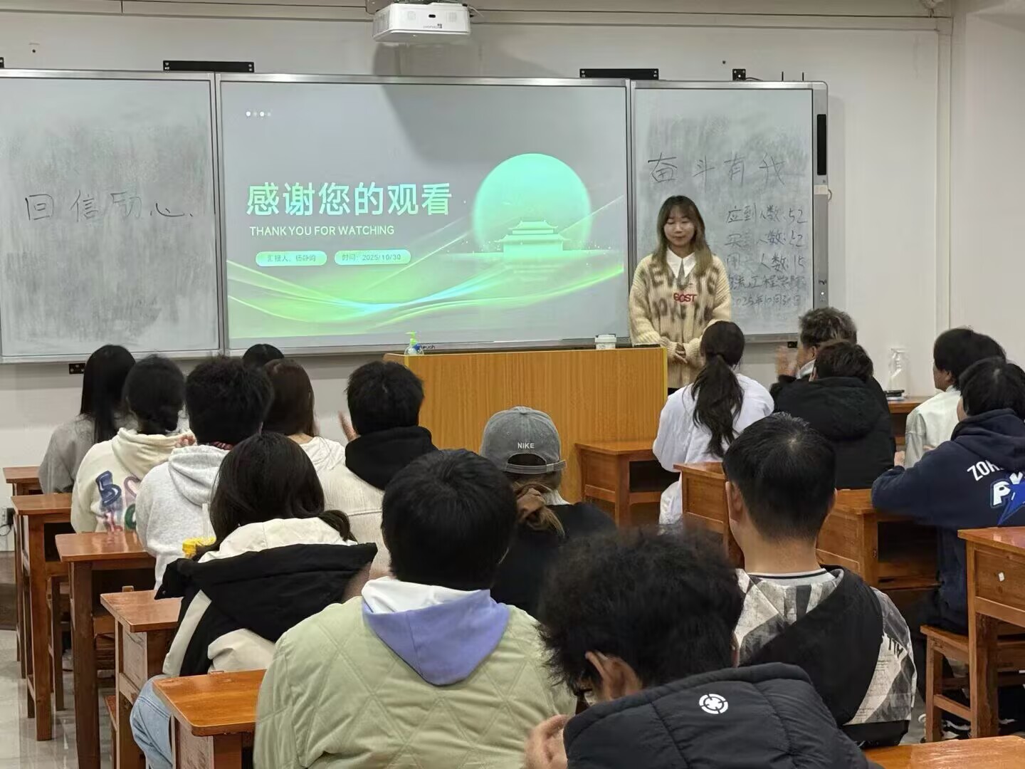 活动在庄严的《光荣啊,中国共青团》歌声中拉开序幕。各班级团支书通过主题视频展播、图文案例解析等丰富形式,带领同学们系统学习习近平总书记重要回信精神的核心要义,重温总书记对青年一代的亲切关怀与精准指引,让“青春的命运始终与时代紧密相连”的理念深入人心。在互动分享环节,团支书引导同学们结合课件内容深入研讨,学生代表们踊跃登台,以真挚情感分享成长感悟,讲述将个人理想融入专业学习、将人生追求锚定强国复兴的信念,现场氛围热烈而庄重,最后各班团支书对活动进行总结,强化学习成效。